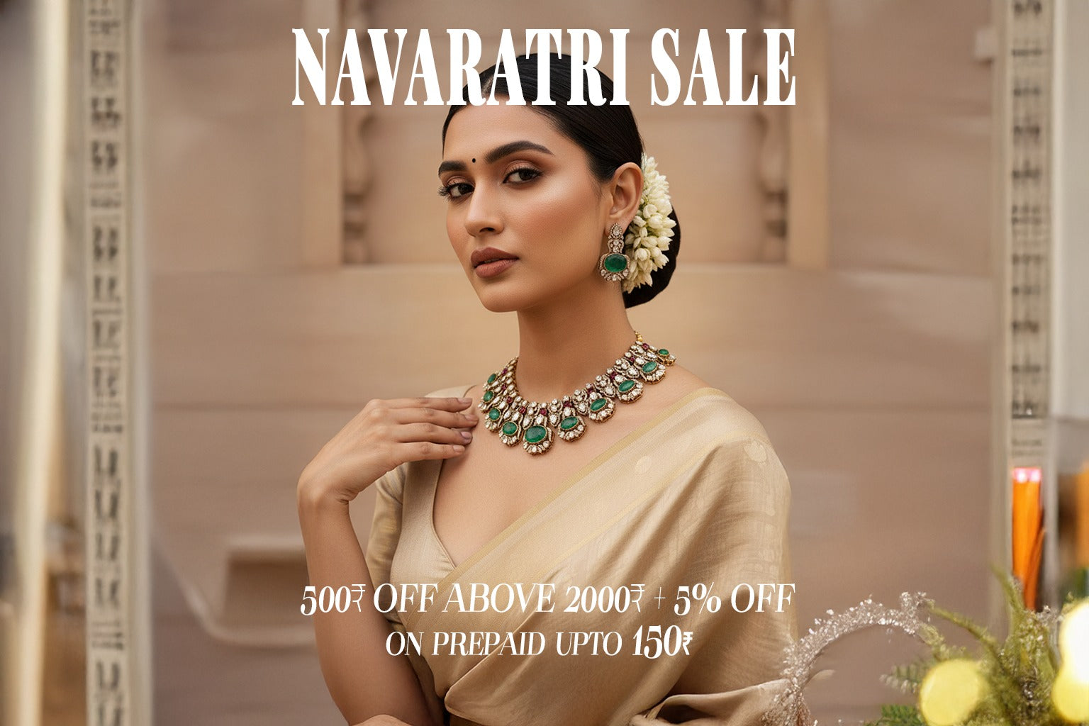 Aadya Navratri Special Long Silver Lookalike Necklace